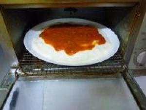 ![]() ホワイトソースにとろみがついたら、お皿にご飯、ホワイトソース、ミートソースをもりつけて