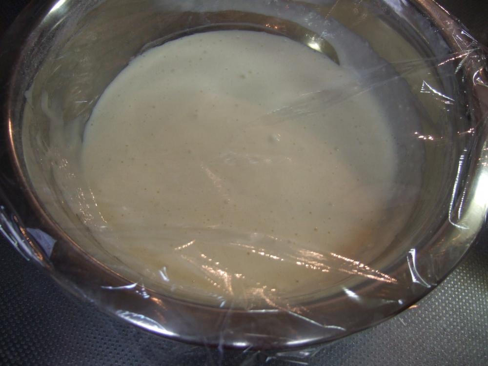 ![]() サラダ油を加え混ぜる。ラップをして室温で約30分置き、生地を落ち着かせる。