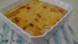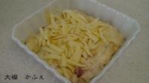 ![]() 器に入れてチーズを乗せます。180度のオーブンまたは、トースターで30分焼きます。