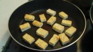 ![]() お豆腐は水切りして、先にフライパンで焼きます。