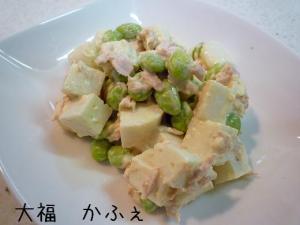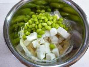 ![]() で、ボールに枝豆とはんぺんを加えてからめあわせて完成です。