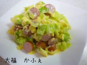 ![]() キャベツがしんなりしたら、卵液を入れて素早くかき混ぜ半熟の状態でお皿に盛ったら完成です。