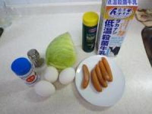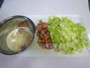 ![]() キャベツは粗みじん切りにします。ウィンナーは輪切りにします。