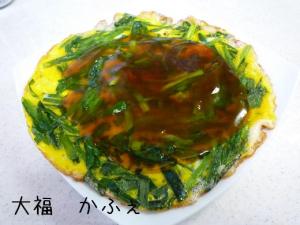 ![]() 弱火にかけて、とろみがつくまで絶えず混ぜます。とろみがついたら、ニラ玉にかけて完成です。