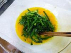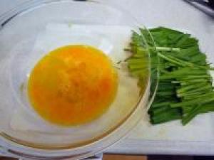 ![]() ニラは洗って食べやすい大きさに切ります。卵はボールに割っていれ、鶏がらの素をいれといておきます。