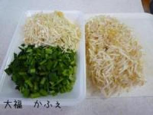 ![]() ニラ、もやし、エノキはあらみじん切りにします。