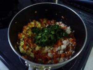 ![]() 鍋に豚ひきと、人参を入れて炒めます。