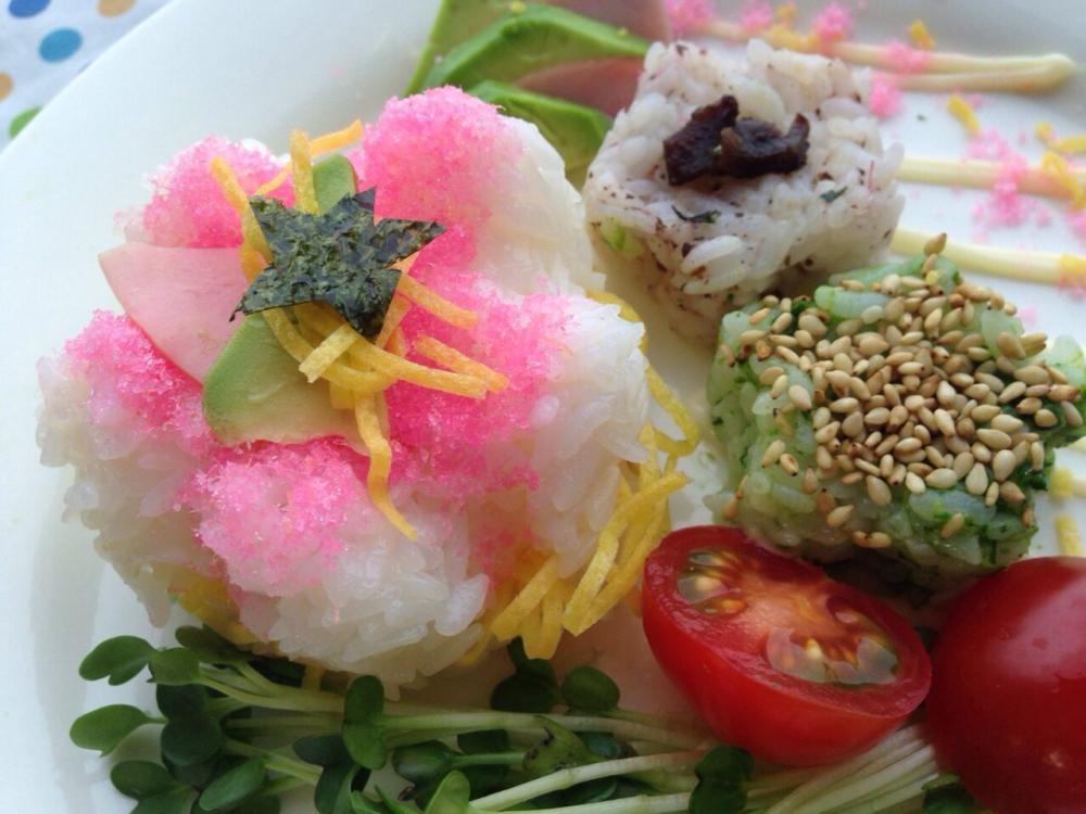 桜でんぶ、錦糸卵、のりで飾り付けをしたら完成!