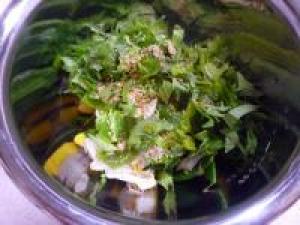 ![]() ボールに水気を絞った材料としそを入れ、ポン酢顆粒だしで味付けしたら完成です.
