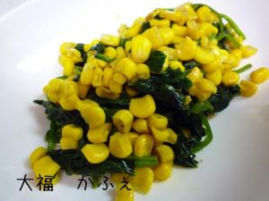![]() コーンをさっと、炒めたらほうれん草を加えて炒めます。