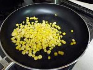 ![]() フライパンに油を引いてコーンを炒めます。