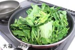 ![]() ほうれん草は洗って、食べやすい大きさに切ります。