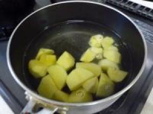 ![]() ジャガイモは柔らかくなるまで茹でて、ザルにあげます。