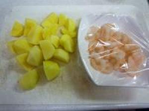 ![]() ジャガイモは皮をむいて、茹でやすい大きさに切ります。
