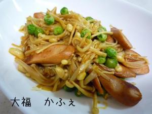 ![]() ウインナー、グリンピースに火がとおったらエノキを加えて炒め合わせます。