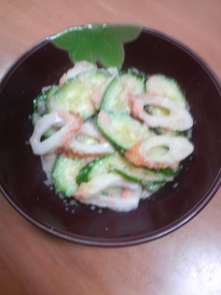 きゅうりと竹輪を合わせ、(2)のソースで和える。
