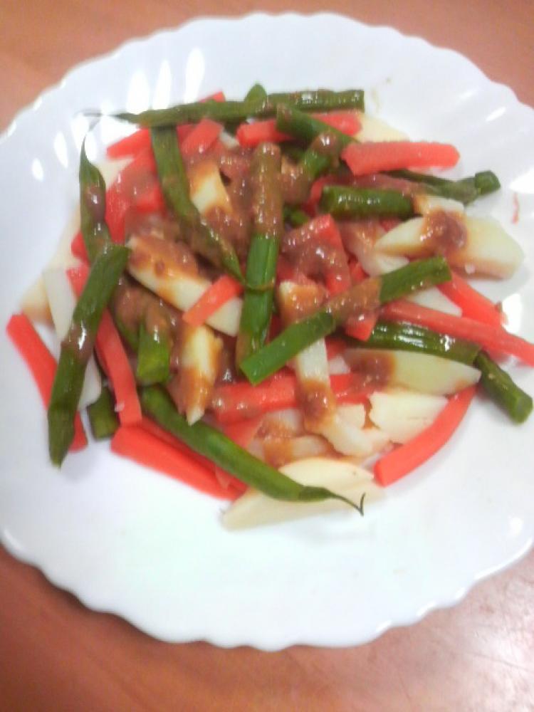 人参もじゃがいももいんげんと同じ大きさに切る。 |