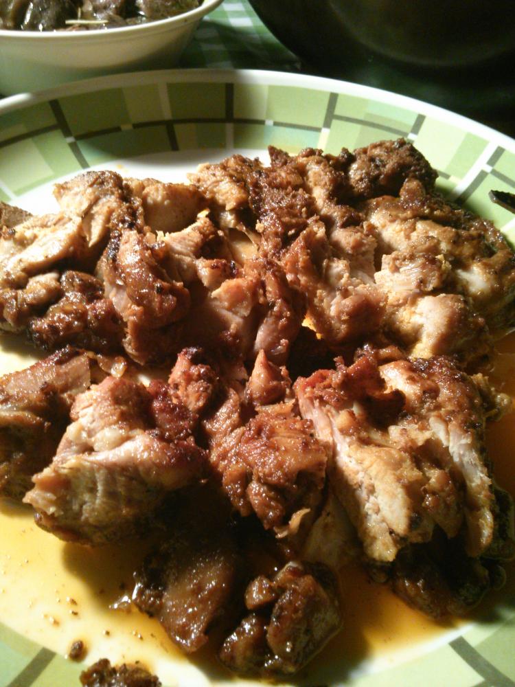 漬けこんだ鶏もも肉を、温めたダッジオーブンに入れ片面ずつふたをしながら焼いて出来上がり。