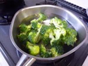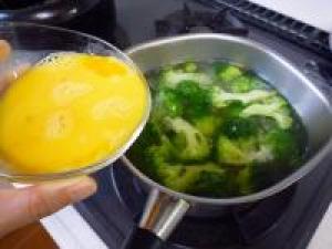 沸騰したら、ブロッコリー、顆粒だしを加えて3分ほど煮ます。 |