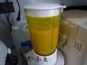 ![]() かぼちゃが煮えたら火を止め、荒熱がとれるまで冷まします。そして、20秒から~30秒ほどミキサーにかけ撹拌します。
