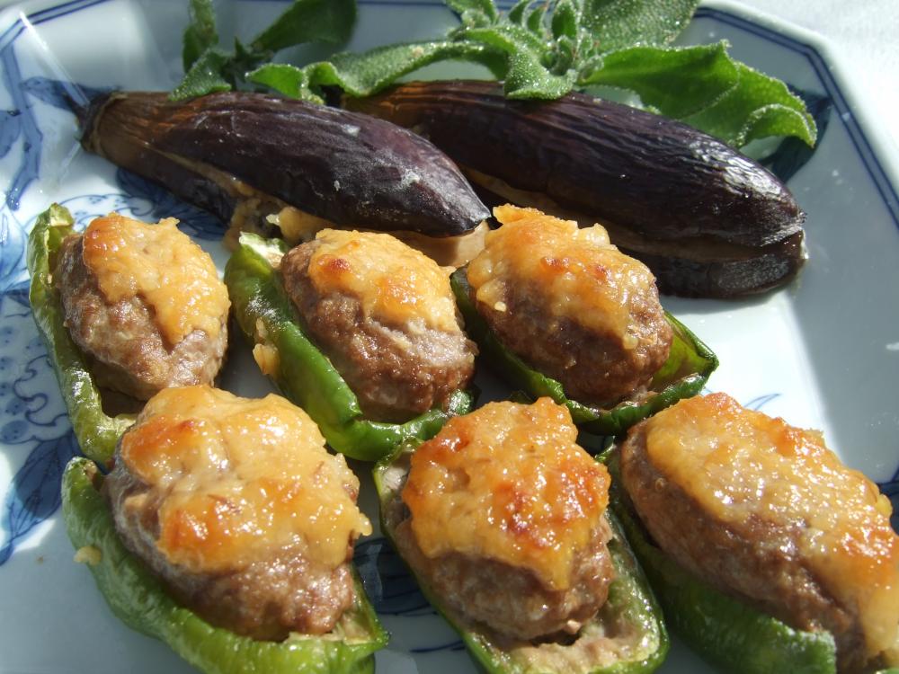 ![]() ピーマンを縦に半分に切り、種を取り、茶漉しで小麦粉をふるう。等分したAを詰める。