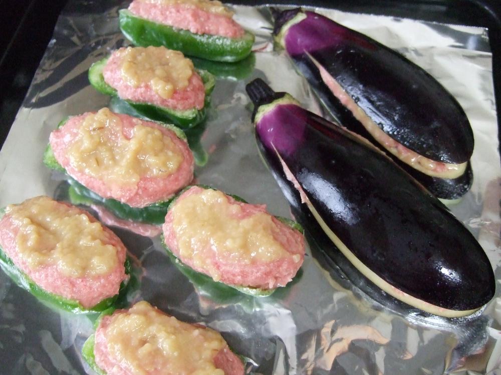 ![]() Bを混ぜ甘酒味噌を作る。Aの上に甘酒味噌を塗る。ナスは内側のAの上に塗り、はさむ感じで。