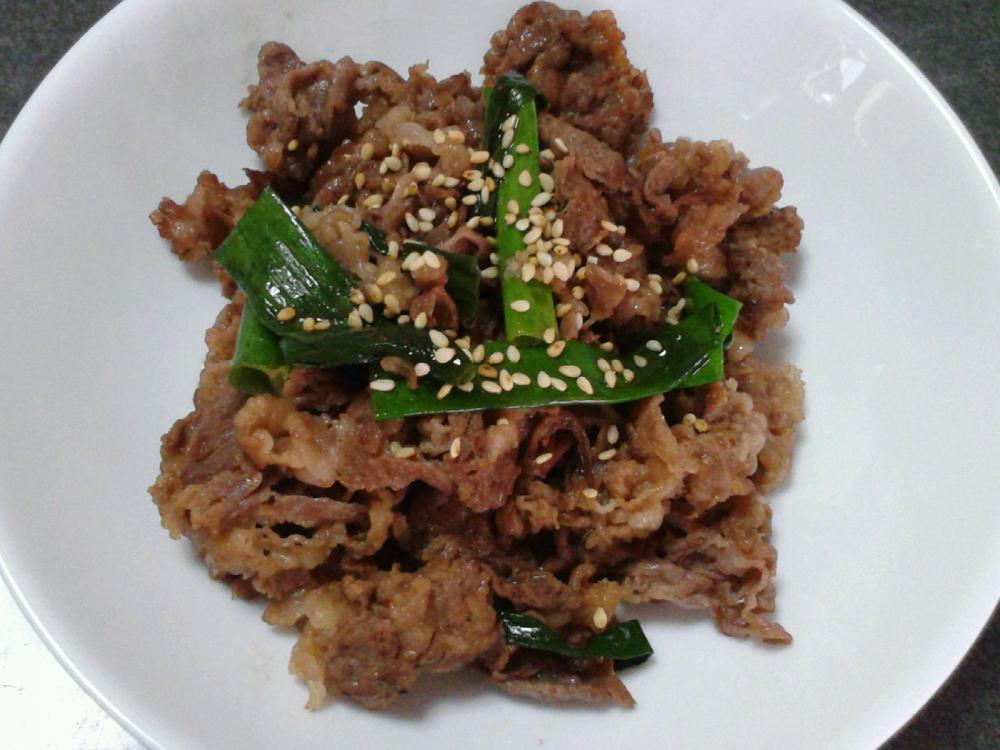 フライパンにサラダ油を熱し、牛肉を炒めます。