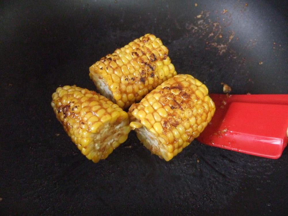 ![]() フライパンにAを熱し、とうもろこしを加え、コロコロと焼く。