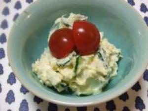 長芋は皮をむいてふかし、つぶす。きゅうりは薄く切って塩で軽くもんで、水分をよく切る。