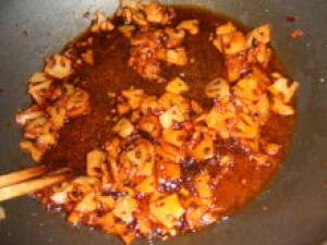 ![]() コチュジャンとはちみつを加え、さらに炒める。