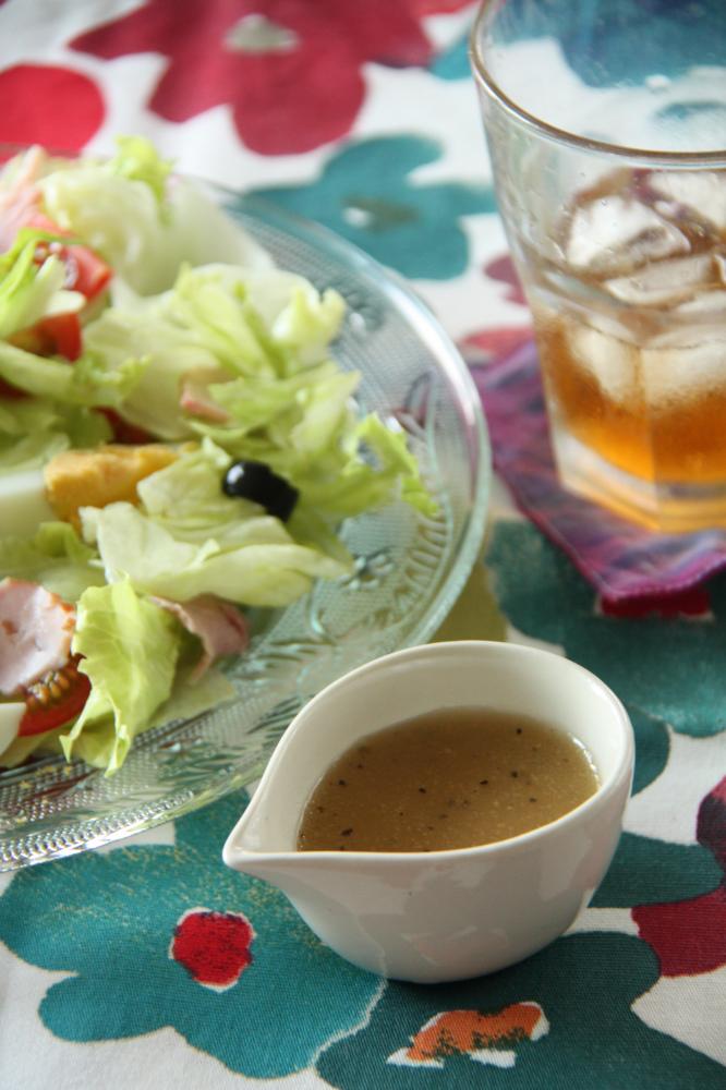 出来上がった甘酢に太白胡麻油、マスタード、塩、黒コショウを加え良く混ぜれば出来上がり。