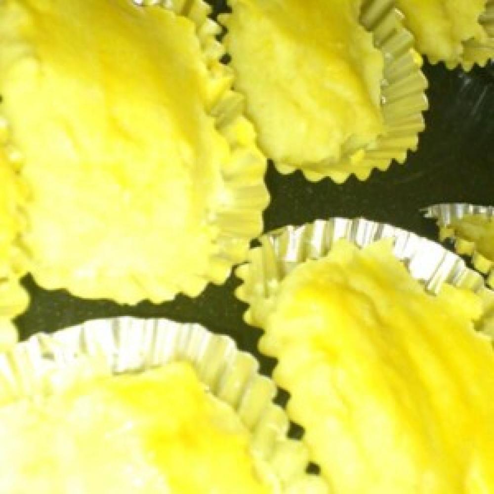 裏ごししたものに 卵黄を入れてよく混ぜ 8個に分けてカップに入れる