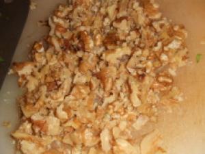 ![]() 大根の葉は、小さくざく切り、くるみは粒をある程度残してみじん切りにする。