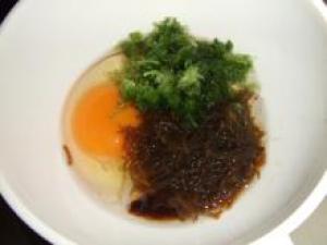 ![]() 卵と(1.)とだし汁と醤油を混ぜる。