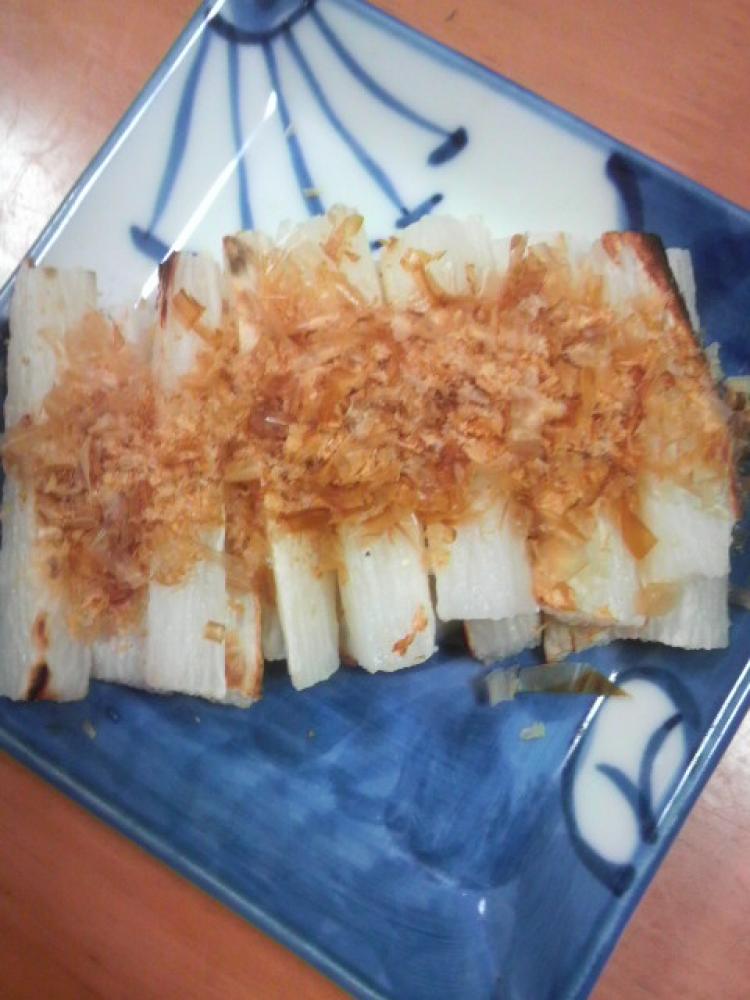 アルミホイルに油を引いて長芋を並べ、魚焼きグリルで5~7分くらい焼く。(軽く焦げ目が付く程度に)
