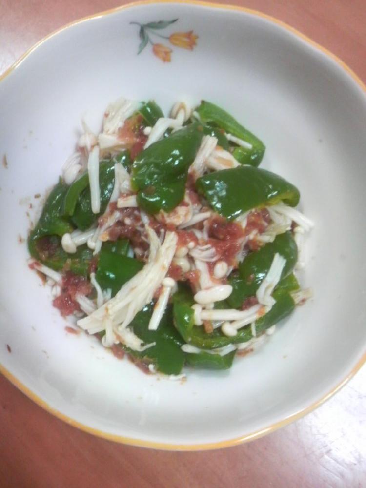 ピーマンとえのきを1分半ほどレンジに掛ける。