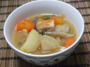 サーモンは一口大の大きさ、にんじん・白ネギは薄切り、大根はイチョウ切り、じゃがいもは食べやすい大きさに切る。