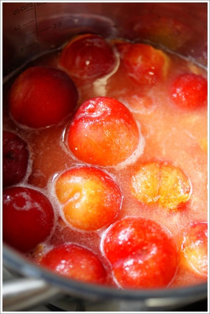 ![]() すももから水分が上がってきたらスプーンで種を取り出し煮沸消毒したビンに入れて冷蔵庫で保存、冷凍もできます。
