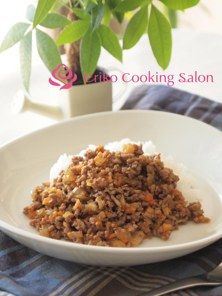 合挽き肉を加え、もう一度塩と黒コショウを加え、ポロポロになるまでしっかり炒める。