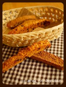 160℃に予熱したオーブンで20分位焼き、焼きあがったら包丁で横幅2cm位の細さに切る。