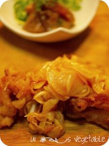 豚肉を適度な大きさに切り、全体に米粉、なければ片栗粉をまぶす。