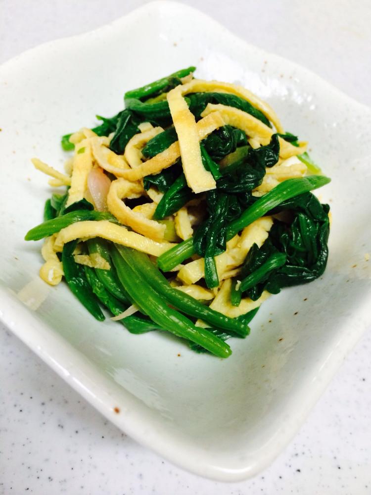 ほうれん草を醤油で和えます。 |