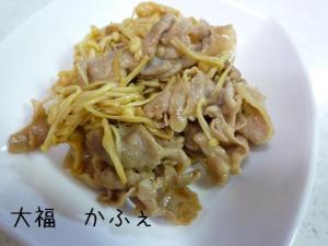 ![]() 豚肉とエノキに火がとおったら、顆粒ダシ、ポン酢を入れていため合わせて完成です。
