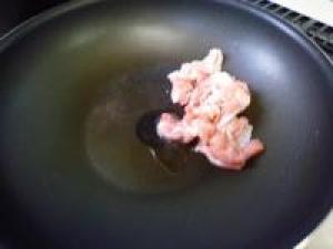 ![]() フライパンに油をひいて、豚肉を炒めます。