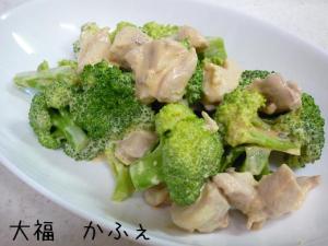 ![]() で、冷めたブロッコリーと、鶏肉を加えて絡め合わせて完成です。冷蔵庫で冷やしてからお召し上がりください。