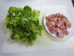 ![]() ブロッコリーは洗って、一口大に切り分けます。鶏ももは皮を取り除いて小さめの一口大に切ります。