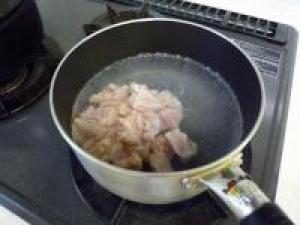![]() ブロッコリー、鶏肉を茹でて火を通します。ブロッコリーの茹ですぎに注意。