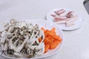 ![]() しめじは石突を切って食べやすい大きさに人参は皮をむいていちょう切りに豚バラは食べやすい大きさに切っておきます。