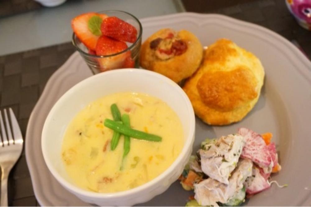 シチューを器に盛りつけ、お好みでココナッツオイルを垂らします。 茹でておいたサヤインゲンを飾ったら出来上がりです。