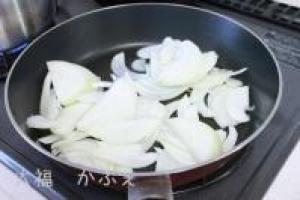 ![]() フライパンに油をひいて、玉ねぎを炒めます。